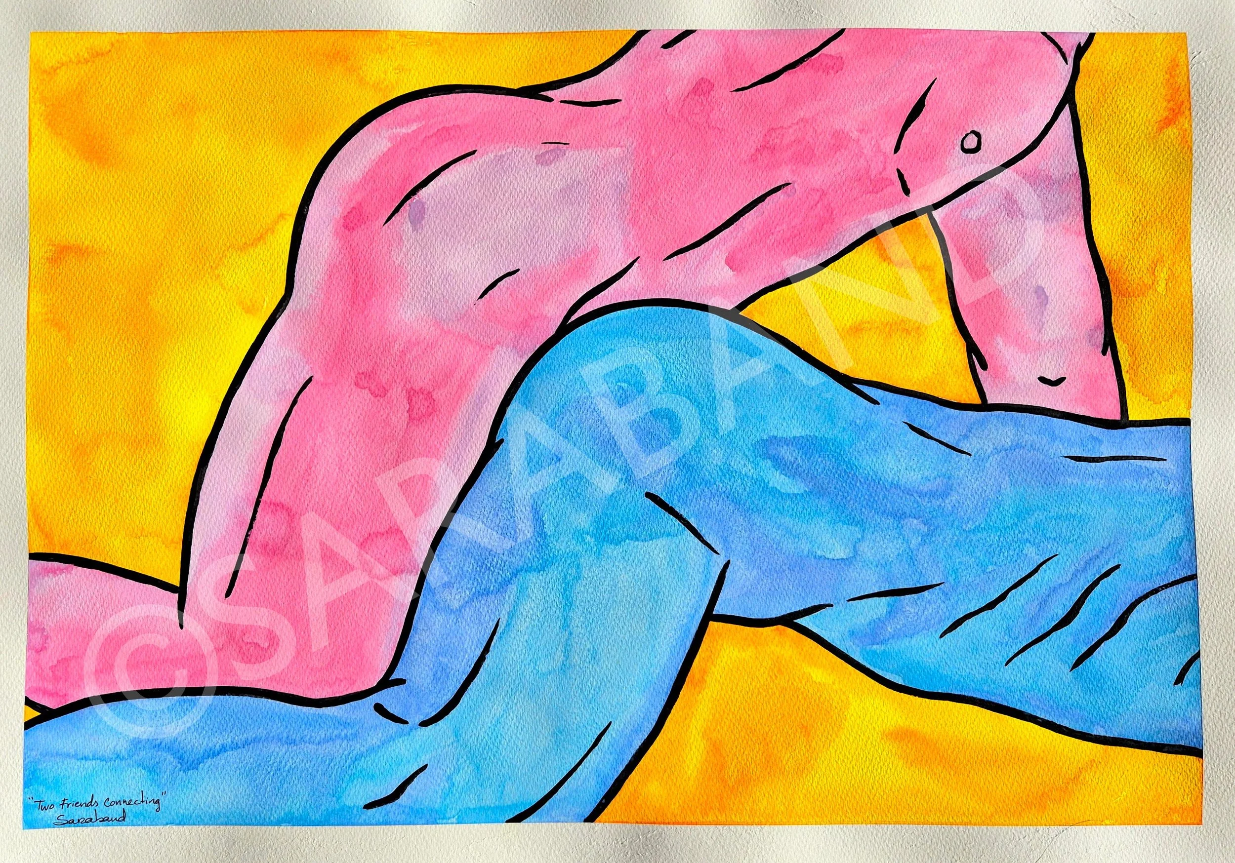 “TWO FRIENDS CONNECTING” - 42x59cm, Japanese watercolours on paper - £110