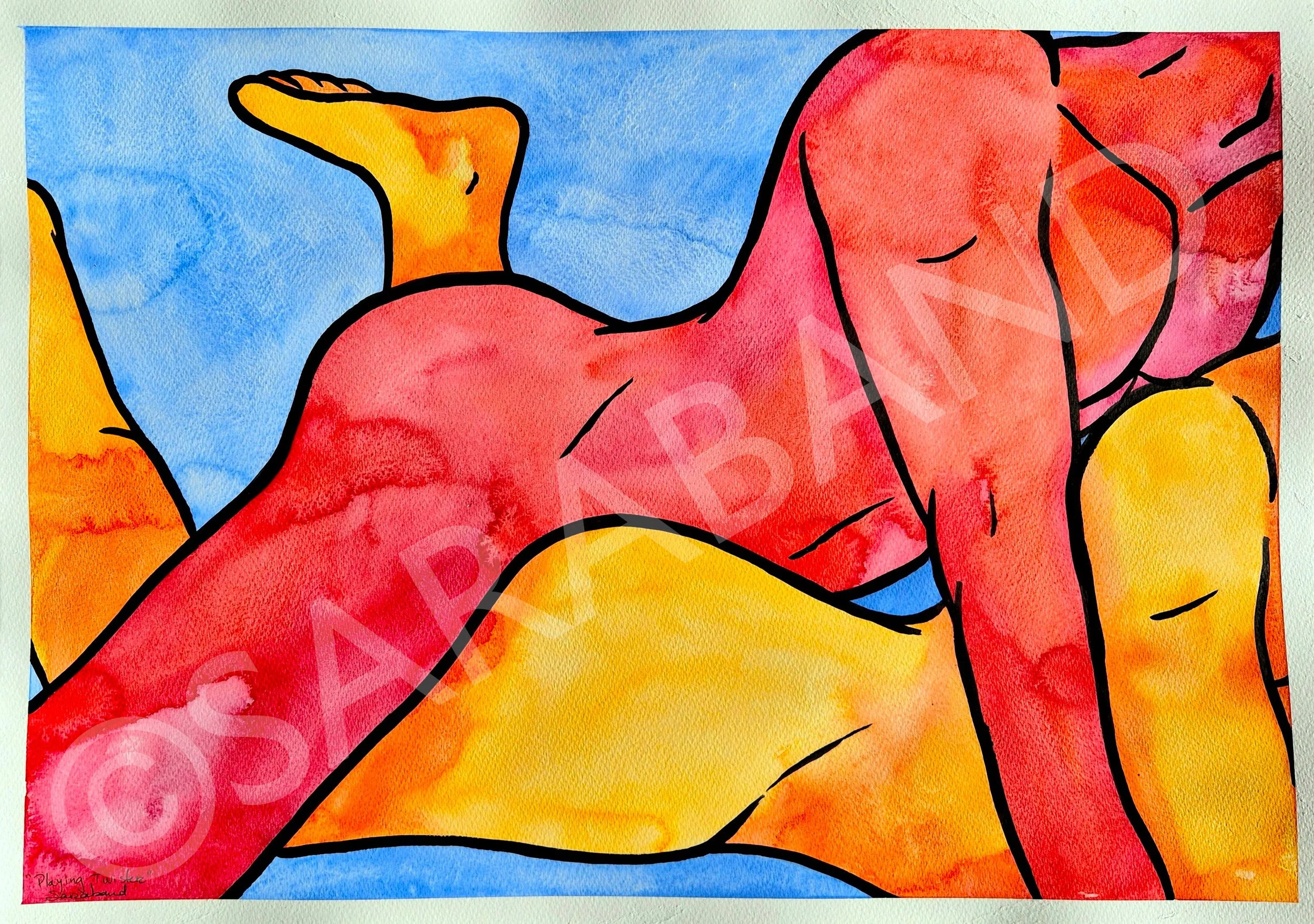 “PLAYING TWISTER” - 42x59cm, Japanese watercolours on paper - £110