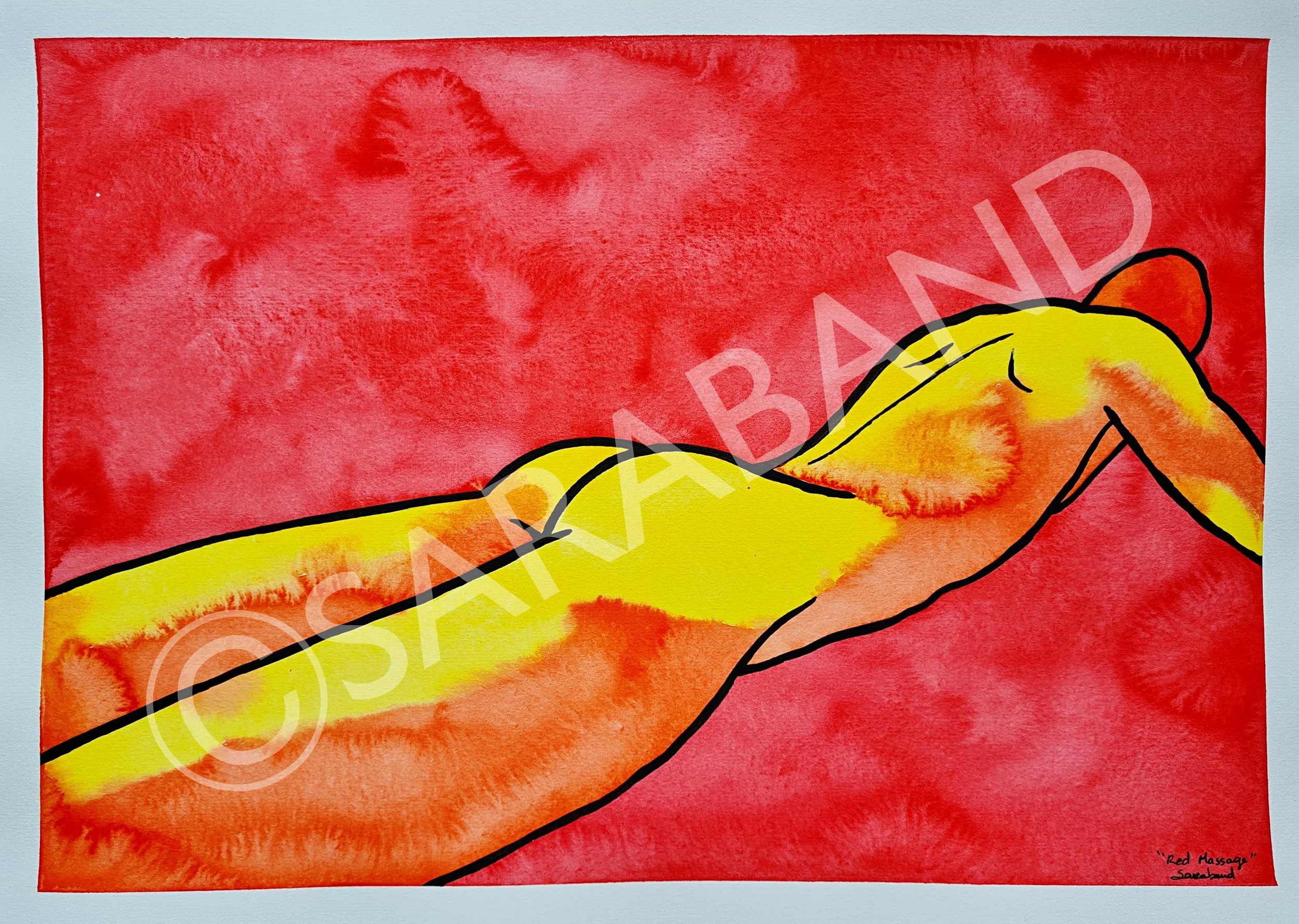 “RED MASSAGE” - 30x42cm, watercolour on paper - £120